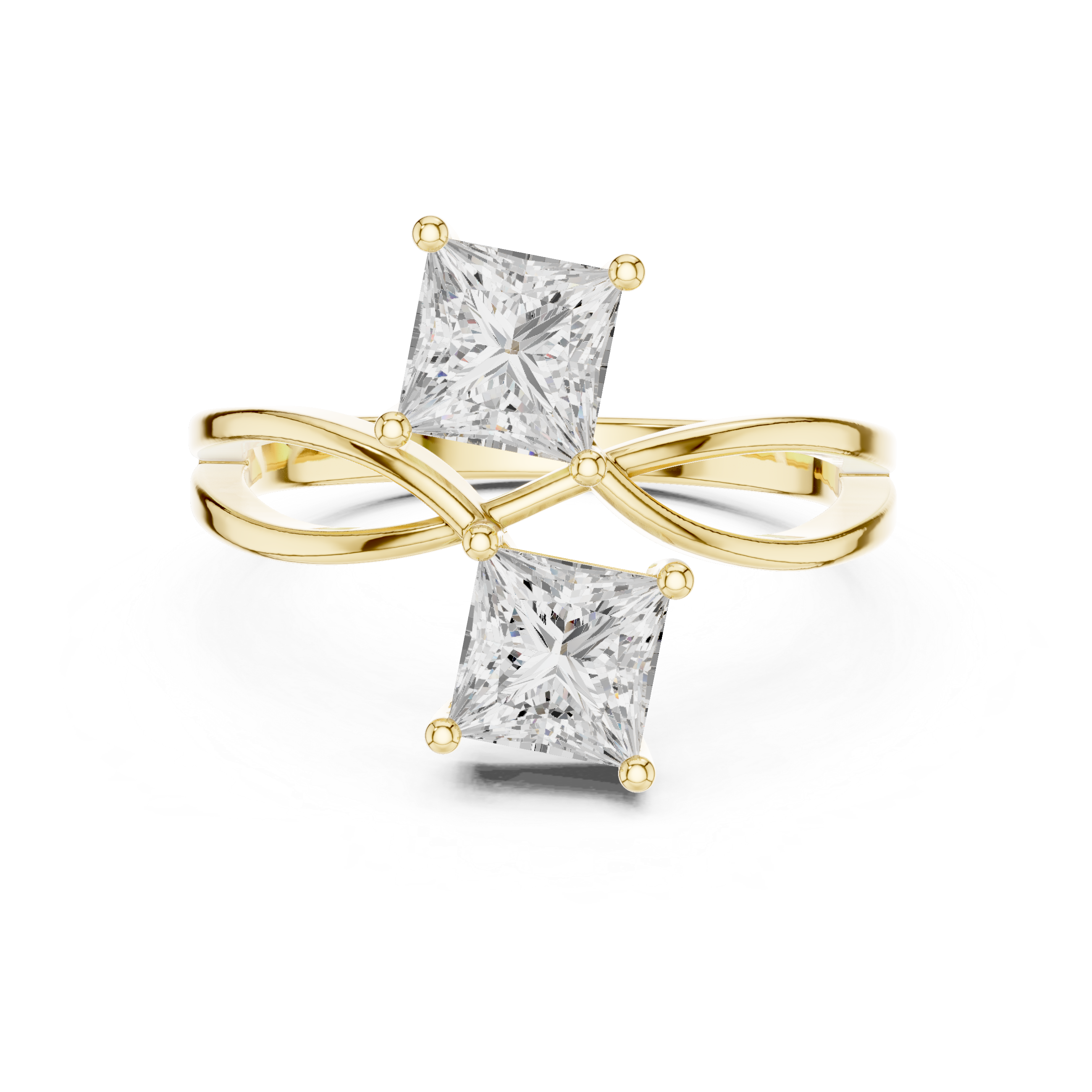 The Princess Cut Two-Stone Engagement Ring is a beautiful symbol of love, unity, and shared journeys. At the center, two dazzling princess-cut diamonds sit side by side, representing the bond between two people and the promise of a future together. Their crisp square shapes and brilliant facets reflect light beautifully, creating exceptional sparkle and elegance.The balanced two-stone design adds a modern and meaningful touch, allowing both diamonds to shine equally while creating a striking and sophisticated look. The sleek band complements the stones perfectly, keeping the focus on their radiant brilliance.