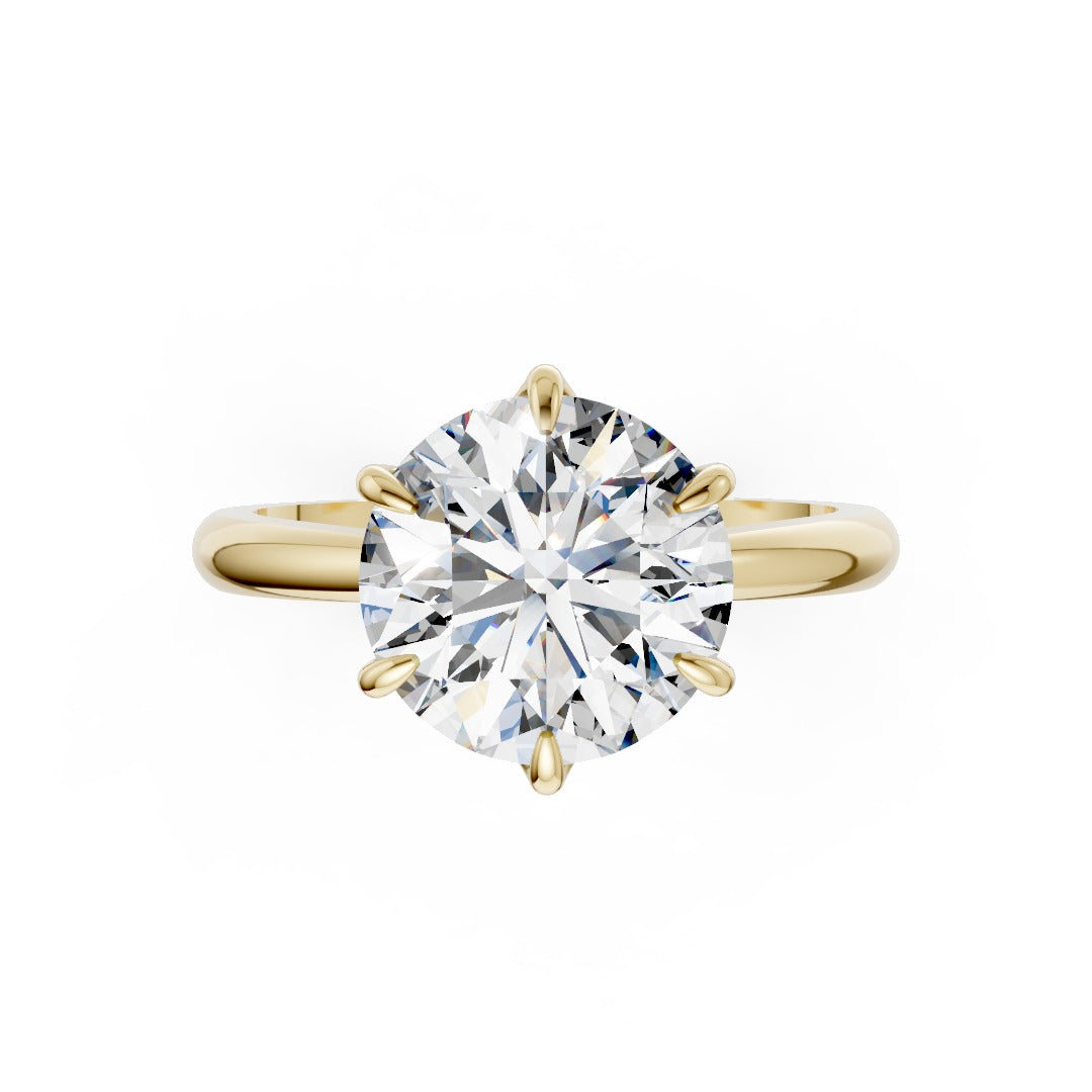 A Round Cut Solitaire Cathedral Set Ring with Six Prong is the epitome of timeless elegance and refined craftsmanship. At its center, a brilliant round-cut diamond takes focus, celebrated for its unmatched sparkle and classic appeal. Secured in a six-prong setting, the diamond is held firmly in place while allowing maximum light to enter from all angles, enhancing its fire and brilliance The cathedral setting features gracefully arched shoulders that rise from the band to support the center stone, giving the ring a lifted, regal appearance. This design not only adds height and sophistication but also creates a beautiful, open profile that showcases the diamond’s beauty.
