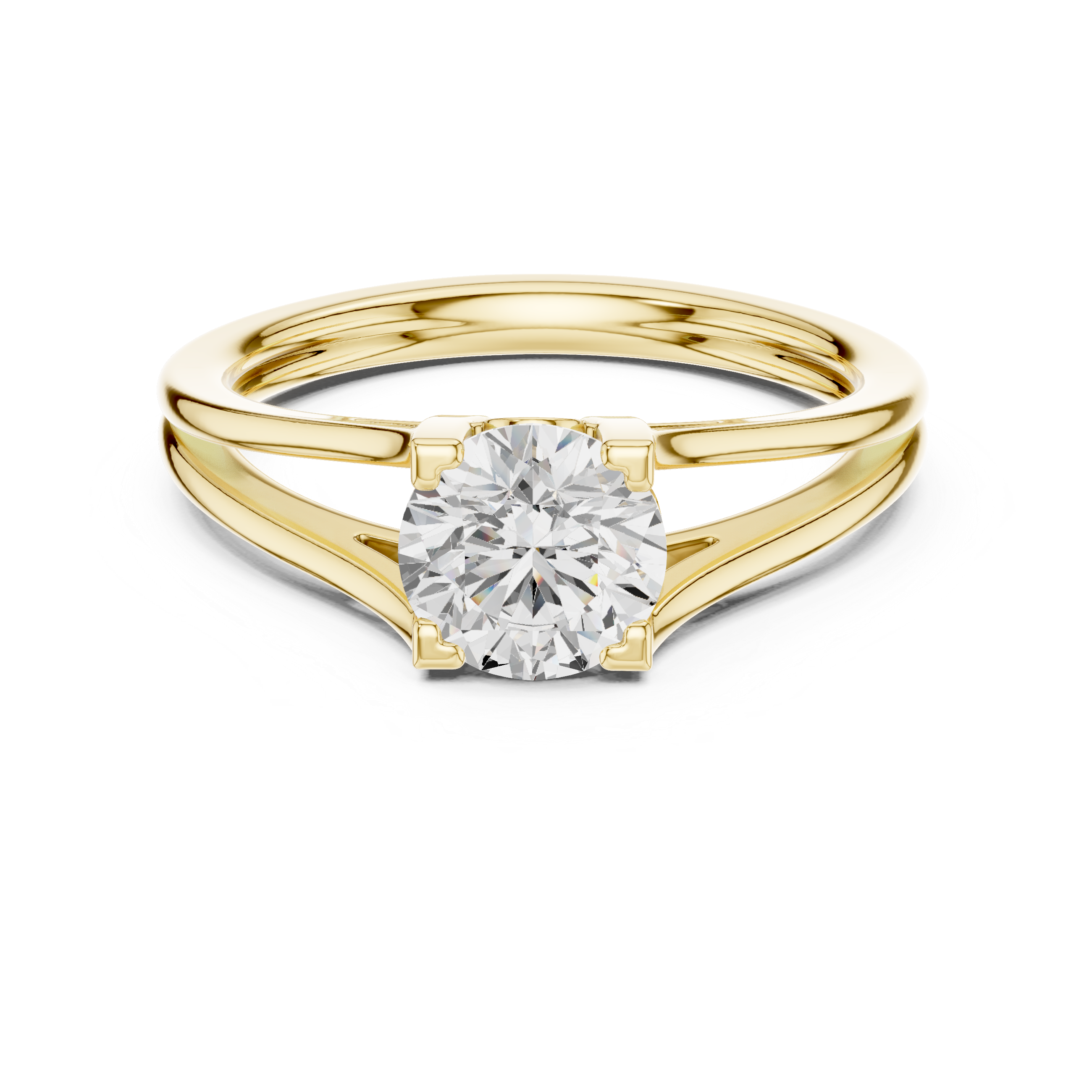 Make your proposal unforgettable with this stunnin Round Cut Solitaire Diamond Proposal Ring With Split Shank designed to symbolize love and commitment. At the center, a brilliant princess cut diamond sparkles with exceptional fire and brilliance, showcasing its sharp facets and modern square shape. The classic solitaire setting allows the diamond to take center stage, highlighting its natural beauty and brilliance.