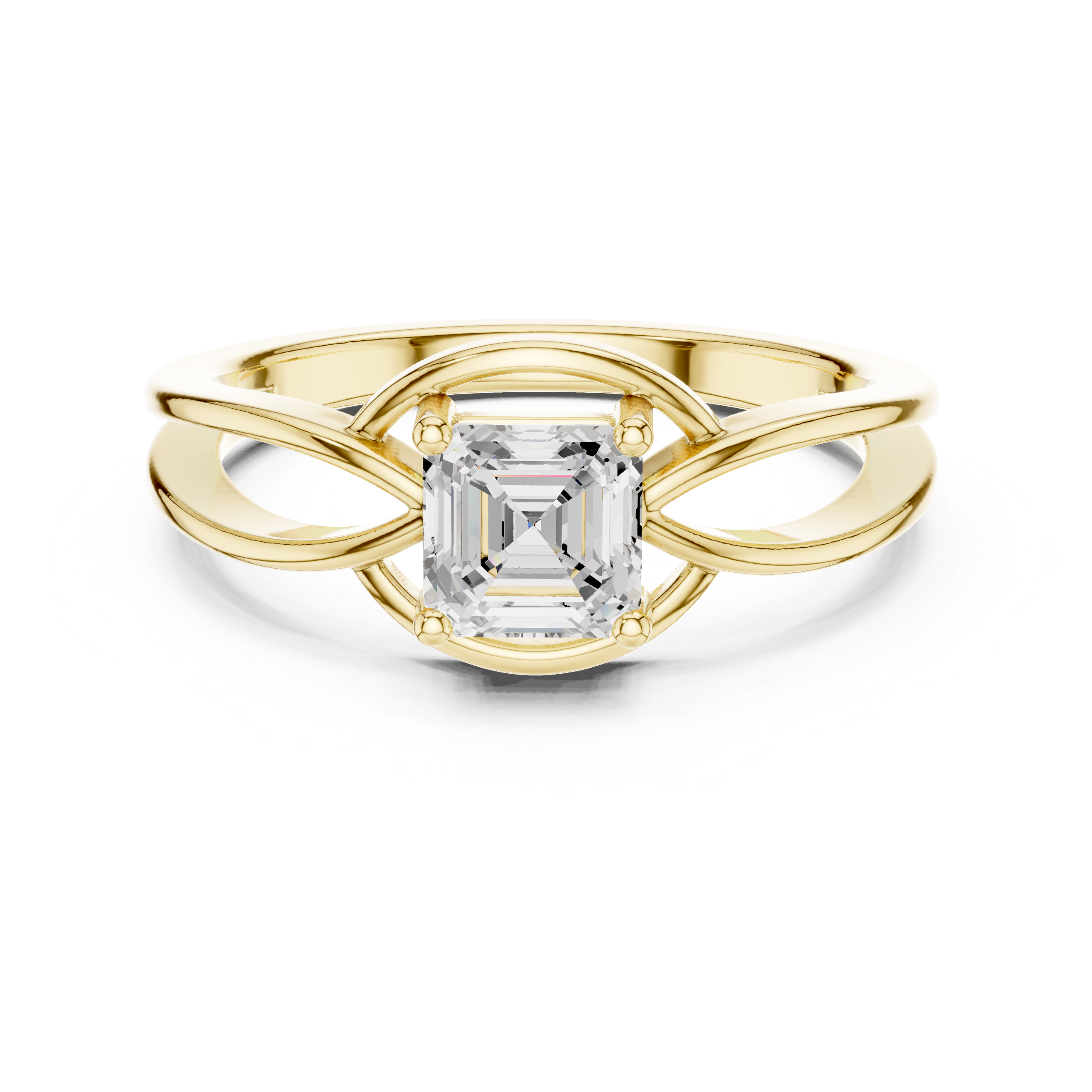The Solitaire Asscher Cut Diamond Ring is a timeless piece that reflects elegance, sophistication, and classic beauty. At the center sits a stunning Asscher-cut diamond, admired for its distinctive square shape and step-cut facets that create a mesmerizing hall-of-mirrors effect. Its clean lines and deep brilliance give the diamond a refined and luxurious appearance.Set in a sleek solitaire setting, the design allows the center diamond to take full focus, highlighting its unique geometry and radiant sparkle. The minimal and elegant band perfectly complements the Asscher-cut diamond, creating a balanced and sophisticated look.